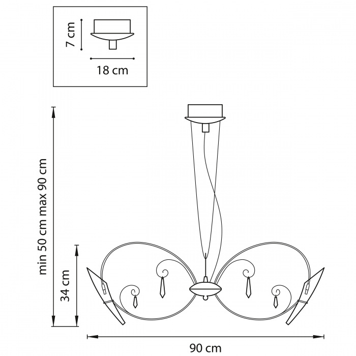 Ширина люстры = (Ширина, см + Длина комнаты, см) / 10. |