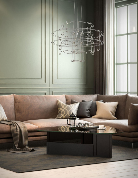 Ширина люстры = (Ширина, см + Длина комнаты, см) / 10. |