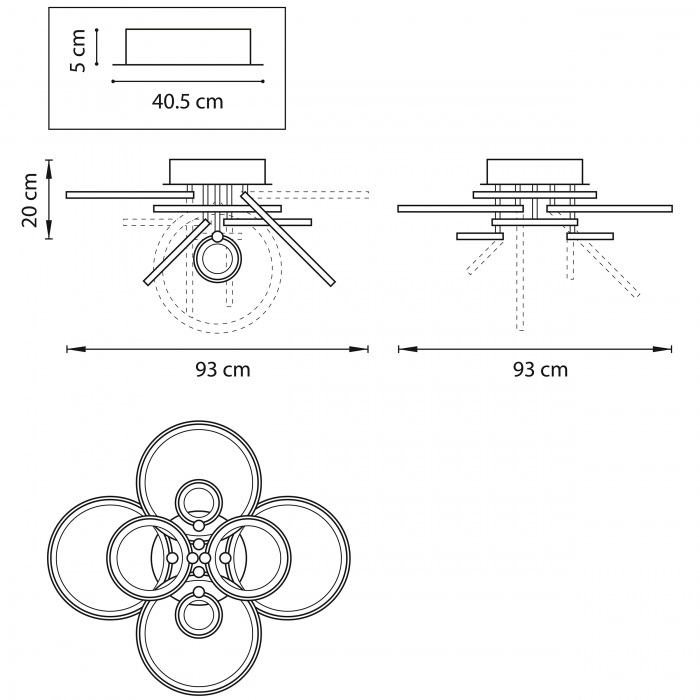 Ширина люстры = (Ширина, см + Длина комнаты, см) / 10. |